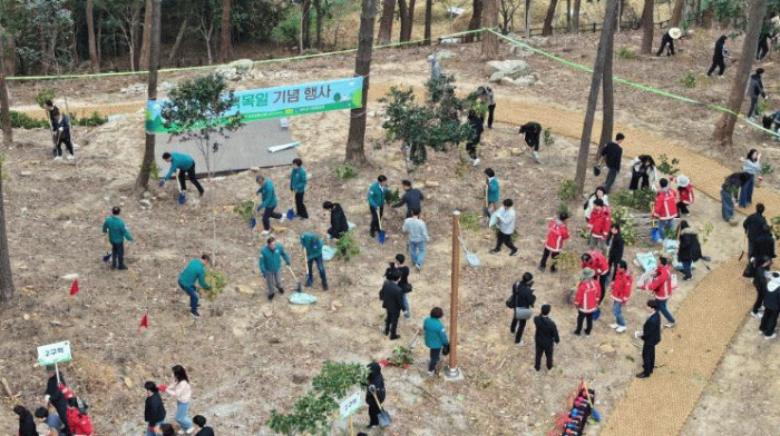 이날 군외면 삼두리 추모 공원 내 2ha 규모의 산림에 지역 대표 난대 수종인 황칠나무와 완도군 지명이 명명된 완도호랑가시나무 1,500주를 식재했다.