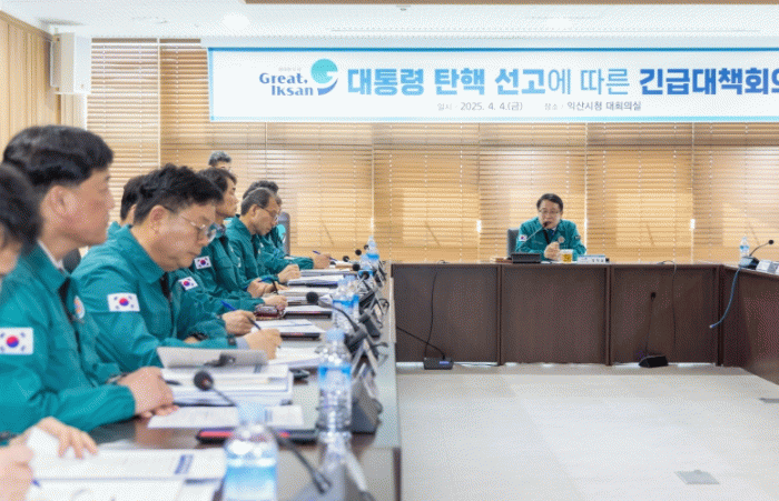 정헌율 시장은 이날 헌법재판소의 대통령 탄핵 심판 선고 직후 긴급회의에 간부공무원을 소집하고 탄핵에 따른 대응 방안을 논의했다.