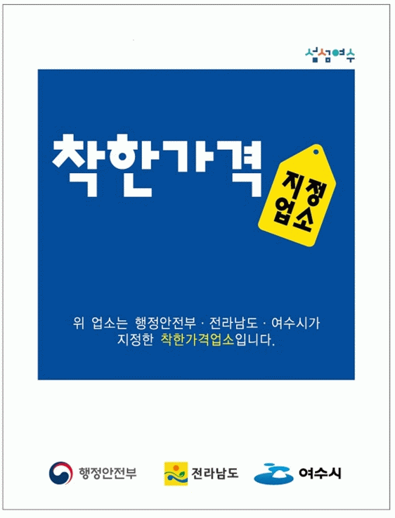 한편, 여수시는 인근 상권 평균 가격 대비 저렴한 상품이나 서비스를 제공하는 개인서비스업(영업개시 6개월 미만은 제외)을 ‘착한가격업소’로 지정하고 있다.