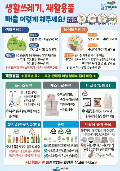 또한, 읍면동별로 자체 계획을 수립해 취약지역 청결 활동을 실시하고 생활폐기물 배출 자제와 올바른 분리배출 홍보를 위한 아파트·마을 방송을 송출할 계획이다.