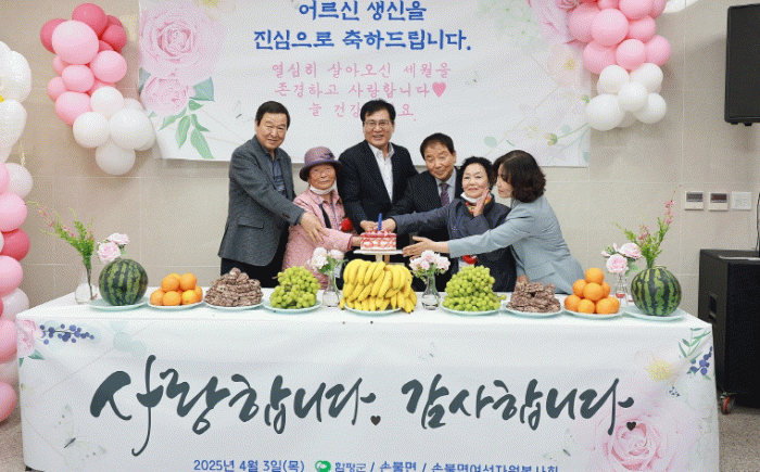 행사에 참석한 어르신은 “주민분들과 공직자 여러분들의 관심과 사랑을 몸소 느낄 수 있어 너무 소중한 시간이었다”며 “성대한 생일 잔치를 열어 주신 모든 분께 정말 감사드린다”고 전했다.