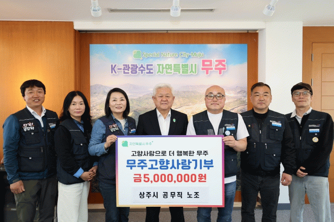 이날 기부는 무주군 공무직노조 회원들(50명)이 지난달 21일 상주시에 고향사랑기부를 위해 5백만 원을 기탁한 데 따른 것으로, 다른 지역에도 귀감이 되고 있다.