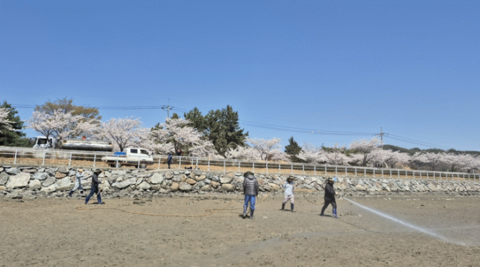 식물의 생명력 유지를 위한 급수 작업이 시급한 상황에서 진월면(문순용 면장), 이장협의회(이기춘 협의회장), 주민자치위원회(박충래 위원장), 청년회(황성현 회장) 소속 10여 명은 이날 갯벌에 들어가 호스를 이용해 물을 공급하며 염생식물의 성장을 도왔다.