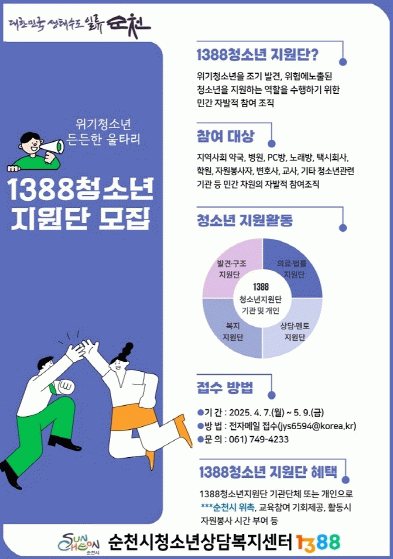 특히, 올해는 전남지역에서 활동 중인 1388청소년지원단 연합 캠페인을 계획 중에 있으며 학교 안팎의 청소년들의 건강한 성장과 보호를 위해 함께 협력해 나갈 예정이다.