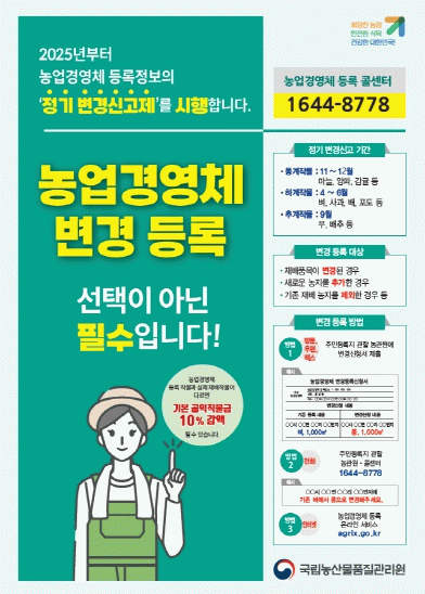 하지만 바쁜 영농활동과 의무에 대한 인식 부족 등으로 농업인이 제때 변경등록을 하지 않고 있어 지원 사업에서 배제되는 등의 불이익을 받을 우려가 있다.