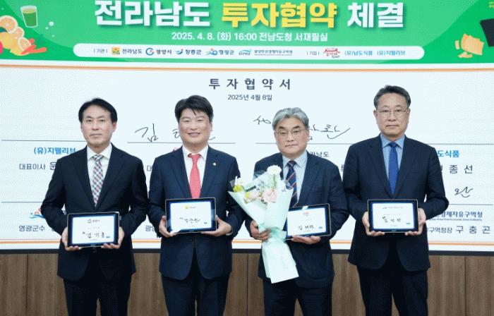 이번 협약은 지난 11월 수립한 식품산업 육성계획의 실행방안 중 하나인 식품기업 유치 차원에서 이뤄졌다. 협약식에는 박창환 전남도 경제부지사와 김태한 김이가 대표, 선종선 남도식품 대표, 윤은주 지웰리브 대표가 참석했다.