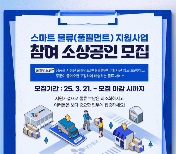 선정된 업체는 상품 입·출고(검수), 재고관리, 배송 등 스마트 물류와 관련된 전체 과정에 다양한 지원을 받을 수 있다.
