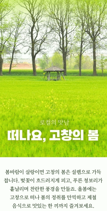 이번 1차 광고는 “고창의 봄”을 테마로 백화점 온라인 식품관인 ‘현대 식품관투홈’을 통해 메인페이지에 노출된다.