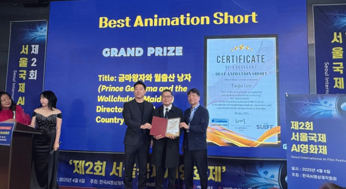 '금마 왕자와 월출산 낭자'는 영암군 대표 자연자원이자 관광지인 월출산의 설화를 바탕으로 생성형 인공지능(AI)으로 제작돼 영화제에서 주목받으며 수상의 영예를 안았다.