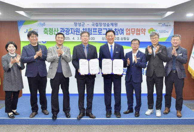 주요 내용은 △관광자원 연계사업 추진 △산림자원 활용 산림복지서비스 지원 △기타 사업에 필요한 교육‧홍보활동 등이다. 협약을 통해 방장산 국립장성숲체원의 다양한 체험 프로그램을 축령산에서도 펼칠 수 있게 됐다.