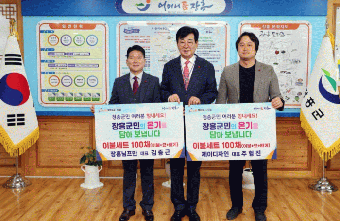 김성 장흥군수는 “삶의 터전을 잃고 슬픔에 잠겨있을 이재민들에게 따뜻한 위로를 전해주신 님프만과 제이디자인 대표께 감사드린다. 장흥군민들의 따뜻한 나눔 실천이 이재민들에게 많은 용기와 힘을 주고 있다”고 전했다.