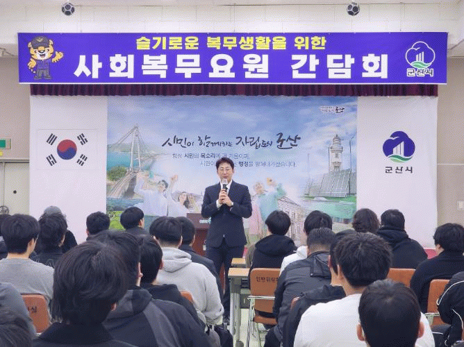 이번 간담회에서는 전북지방병무청 소현준 복무지도관이 강사로 나와 ‘군산시 구성원으로서 사회복무요원의 역할과 기대효과’를 주제로 특강을 진행했다.