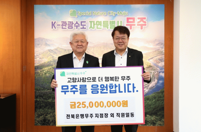 전북은행 무주지점은 2023년부터 무주군에 연속해서 고향사랑기부(6천8백만 원)를 하고 있으며 은행 고객을 대상으로 고향사랑기부제 홍보에도 앞장서고 있다.