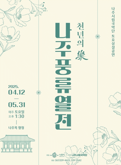 공연은 나주목 향청에서 매주 토요일 오후 1시 30분에 시작되며 누구나 무료로 관람할 수 있다. 전통예술을 즐길 수 있는 열린 무대로 시민은 물론 봄철 나주를 찾는 관광객들에게도 특별한 문화 향유의 시간을 선사할 것으로 기대된다.