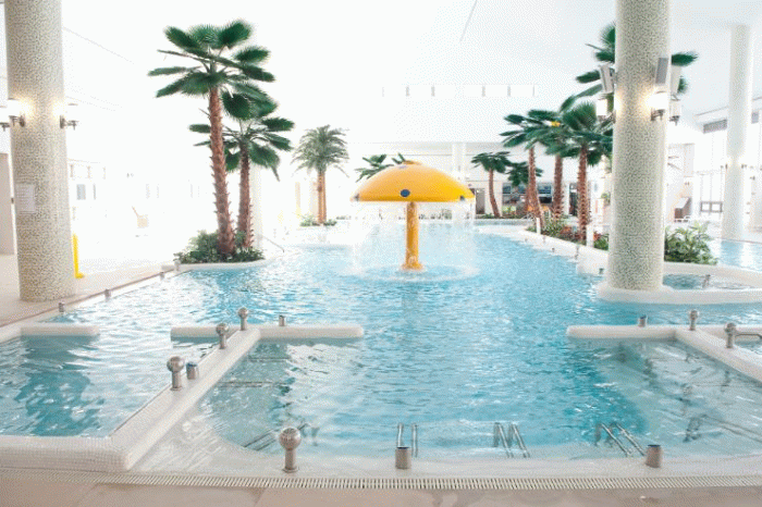 게르마늄 성분이 함유된 온천에서 수압 자극을 통해 물리치료의 효과를 느낄수 있고, 어린아이들을 위한 물놀이 시설도 있다.