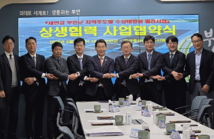 권익현 부안군수는 “새만금 수상태양광 발전사업이 지역 주민과 이익을 공유할 수 있는 햇빛 연금 시대를 열어 민생경제를 살리는 마중물이 되길 기대한다”고 말했다.