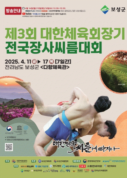 한편, 보성군은 3년 연속 ‘대한체육회장기 전국장사씨름대회’를 유치하며 전통 민속 스포츠의 계승과 발전에 앞장서고 있다.