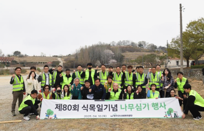 10일 진행된 행사에는 유희태 완주군수, 이희수 완주군 시설관리공단 이사장과 함께 시설관리공단 직원 30여 명이 참여해 1,500㎡ 면적에 왕벚나무 100여 주를 식재했다.