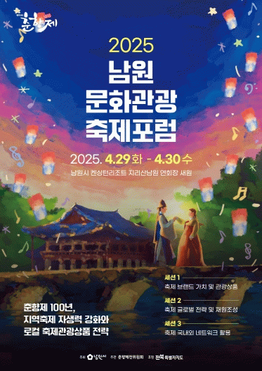 이번 포럼은 ‘춘향제 100년, 지역축제 자생력 강화와 축제 관광상품 전략’을 주제로, 축제 및 관광 전문가들이 참여해 ‘지역 문화자원의 미래가치와 활용 전략’을 함께 모색하는 자리다.