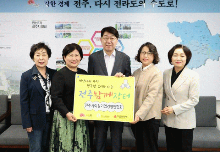 전주시여성기업경영인협회는 10일 전주시장실을 방문해 지역경제 활성화와 연대의 소비문화 확산을 위한 ‘전주함께장터’ 기부금 300만 원을 전달했다.