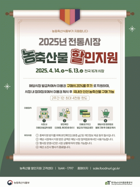이번 시범사업은 전국 17개 주요 전통시장에서 2개월간 운영되며, 농림축산식품부는 사업 종료 후 운영성과와 개선사항을 종합 검토하여 사업 확대 여부를 결정할 계획이다.