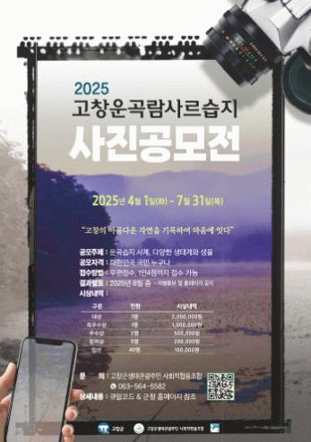 공모전은 ‘고창의 자연을 기록하고 마음에 잇는다’는 주제로, 운곡람사르습지의 생태적 가치와 아름다움을 널리 알리기 위해 마련됐다.