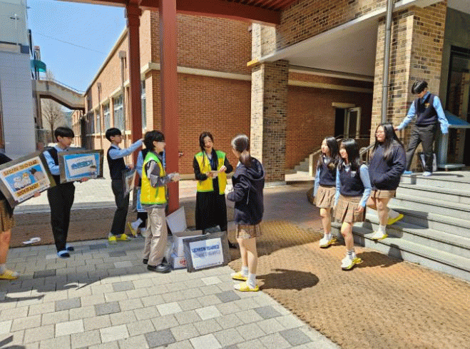 점심시간을 활용해 학생들과 교사들에게 ▲목례 ▲손 흔들기 ▲하이파이브 등 3가지 인사 방법을 제안했다. 참여자들에게는 간식을 제공하며, 인사를 매개로 유쾌하고 밝은 소통의 시간을 가졌다.
