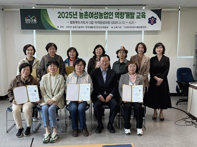 노금선 농업기술센터 소장은 “이번 힐링푸드지도사 교육을 통해 생활개선회원들이 치유음식으로 건강한 진안을 만들어 나아가는데 큰 역할을 할 것으로 기대된다”며 “지역자원을 활용한 지역경제의 성장을 위해 힘써주시기 바란다”고 전했다.