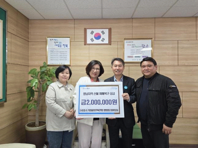 이종숙 황방회장은 “예기치 못한 산불로 삶의 터전을 잃은 주민들께서 하루빨리 평온한 일상을 되찾으시길 바란다”며 “특히, 산불 진화를 위해 헌신하신 모든 분들께 깊은 감사의 마음을 전하며, 이번 성금이 작은 위로와 도움이 됐으면 한다”고 말했다.