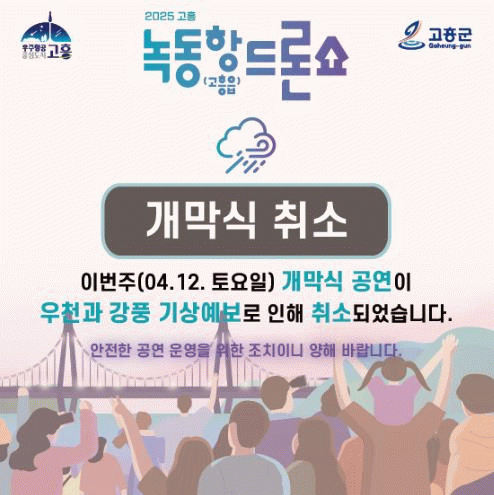 고흥군 관계자는 ‘안전한 공연을 위해 부득이 공연을 취소하게 됐다.