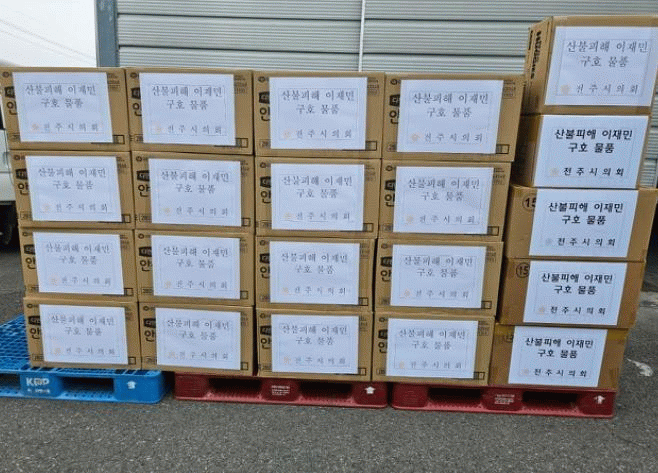 남관우 의장은 “이번 산불로 피해를 입은 이재민과 희생자 유가족들에게 깊은 위로의 말씀을 드린다”며 “구호물품이 일상을 회복하는데 작은 보탬이 되길바라며 앞으로도 지방정부 간 협력과 연대를 강화해 어려움을 함께 나누는 전주시의회가 되겠다”고 말했다.