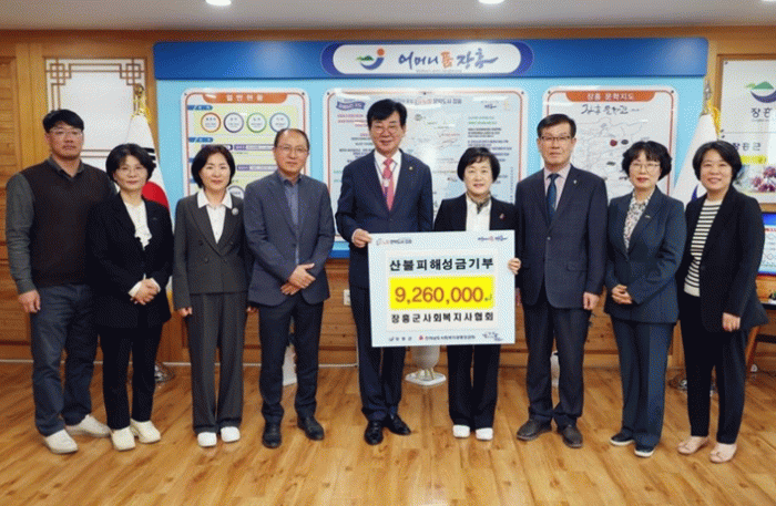 김성 장흥군수는 “산불피해 이재민들을 위해 따뜻한 마음을 모아주신 장흥군사회복지사협회에 감사드린다. 피해지역의 피해복구와 일상회복에 큰 임이 될것이다”고 전했다.