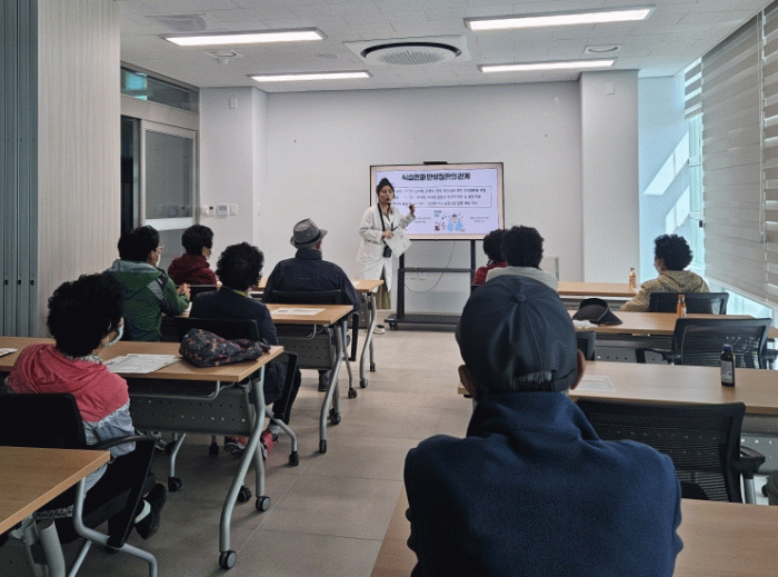 이날 노년기 올바른 건강관리 방법’을 주제로 개별 인바디, 스트레스 측정 검사 등이 진행됐으며, 만성질환 예방 및 관리 방법, 낙상사고 예방 방법, 노년기 올바른 영양섭취 정보 등도 어르신들께 알기 쉽게 전달됐다.