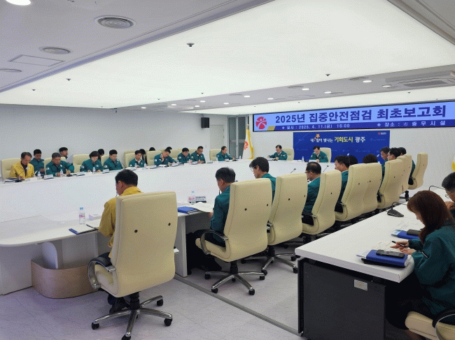 광주시는 안전점검 돌입에 앞서 11일 시청 충무시설에서 ‘집중안전점검 최초보고회’를 개최했다. 이날 회의에는 광주시와 자치구, 산하 공사·공단 등 19개 기관 관계자들이 참석했다.