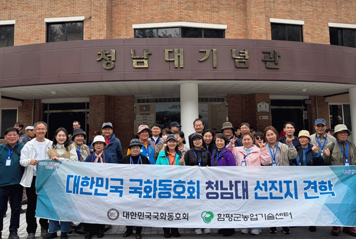 함평군은 13일 “대한민국 국화동호회원 34명이 지난 12일 충북 청주시 청남대를 방문해 조경 연출 및 전시기법을 배웠다”고 밝혔다.