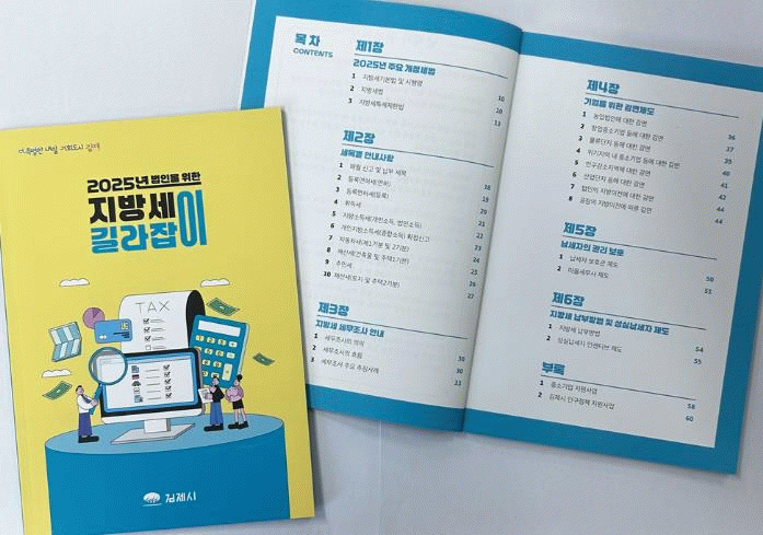 지방세 안내 책자 제작 및 배부는 작년부터 김제시에서 실시하고 있는 납세 편의시책 중 하나이며, 책자에는 신설·전입법인을 위한 맞춤형 지방세 정보(▲2025년 주요 개정세법, ▲세목별 안내, ▲지방세 세무조사 안내, ▲기업을 위한 감면제도)뿐만 아니라 납세자 보호관 제도, 마을세무사 제도, 성실납세자 인센티브 제도 등의 내용을 담고 있다.