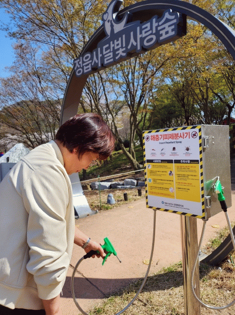 시는 최근 ▲정읍사 달빛 사랑숲 ▲칠보산 등산로 ▲초산동 등산로 ▲내장산 서래봉 탐방로 4곳에 신규 분사기를 설치했다.