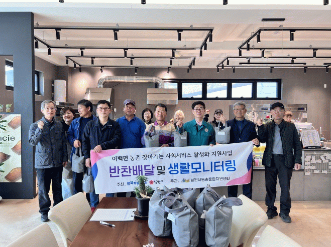 남원시에서 지원하고 농촌종합지원센터에서 추진하는 이번 사업은 8일 이백면 행복나눔센터의 주민상생협의회(위원장 안길찬) ‘동행’ 주관으로 사회서비스 제공 공동체 ‘문화유랑단’과 협력해 복지 사각지대에 놓인 취약계층 15가구에 손수 반찬을 만들어 배달하는 ‘행복한 반찬나눔’ 발대식으로 올해 본격적인 활동을 시작했다.