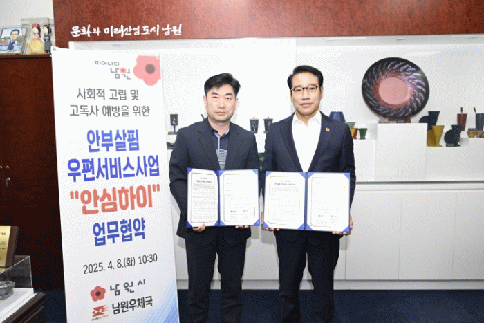 남원시와 남원우체국은 지난 4월 8일 사업 전반을 점검하고 협력하기 위한 기관 간 협약을 체결했으며, 올해도 남원시민을 위해 힘을 합치기로 손을 맞잡았다.