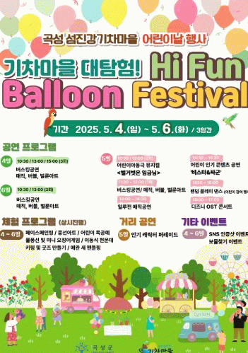 곡성군 관광과 관계자는 "이번 행사는 미래의 희망인 어린이들에게 행복한 추억과 즐거운 꿈을 선사하기 위해 올해 처음 풍선을 주제로 특별하게 준비했다."라며 “환상적인 풍선의 세계에서 맘껏 뛰놀며 잊지 못할 즐거운 시간을 보냈으면 좋겠다”라고 전했다.