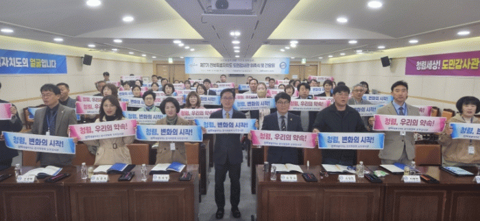 이날 위촉식에 이어 진행된 간담회는 ‘청렴 퍼포먼스’를 시작으로 ▲2025년 도민감사관 운영계획 및 청렴시책 설명 ▲ 운영방안 토의 ▲건의사항 의견 수렴도 진행됐다.