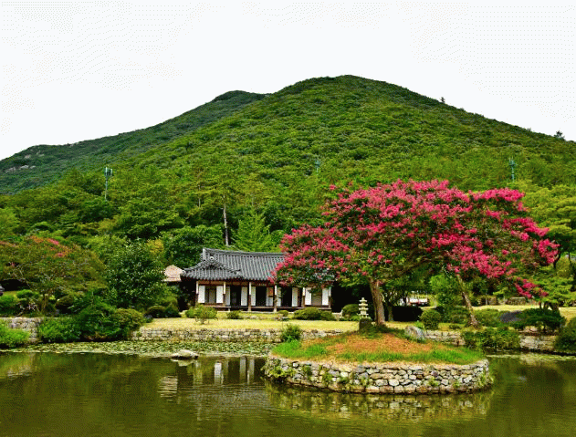 연못과 정원이 어우러진 진도의 대표 명승지로, 연못 인공섬에 있는 약 95년 된 배롱나무는 여름 내내 꽃을 피우고 사계절 아름다운 자태를 유지하며 운림산방의 자연풍경을 완성하고 있다.