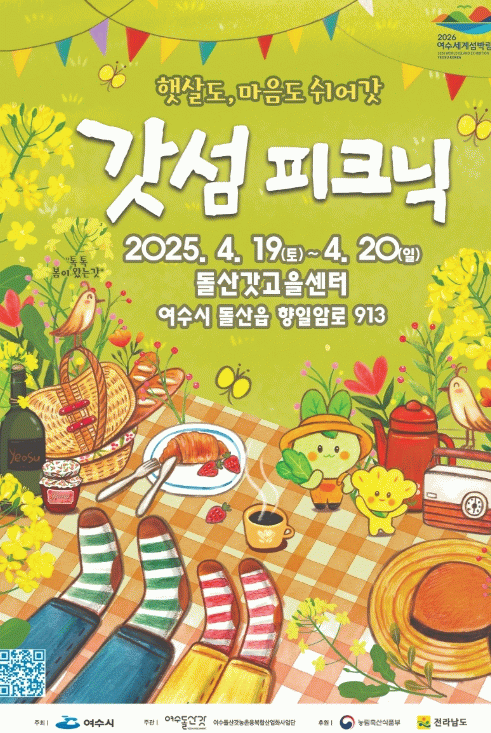 올해는 '햇살도, 마음도 쉬어갓!'이라는 주제로 자연 속에서 여유로운 소풍을 즐기고 여수 돌산의 매력을 발견할 수 있도록 기획됐다.