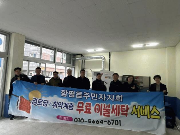 함평군은 16일 “함평읍 주민자치회가 관내 55개 경로당과 독거노인, 한부모 가정 등 취약계층을 대상으로 무료 세탁 서비스를 제공하는 ‘무료 빨래방’ 사업을 본격 운영한다”고 밝혔다.