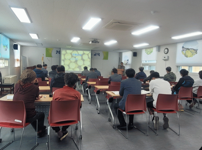 이번 교육은 논 콩 생산단지의 경쟁력 향상과 기술 역량 강화를 위해 마련됐고, 논 콩 생산량을 높이기 위한 병해충 방제 교육, 논 배수 관리에 대한 사례발표 및 질의응답 등으로 구성됐다.