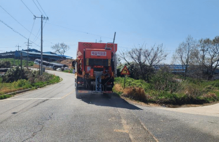 동절기 도로 제설을 위해 액상 제설재 살포기가 탑재된 차량을 이용해 구제역 방역 약품을 적재 후 살포하며, 도내 구제역이 종식될 때까지 축산농가 진입도로를 대상으로 방역을 지속 실시한다.