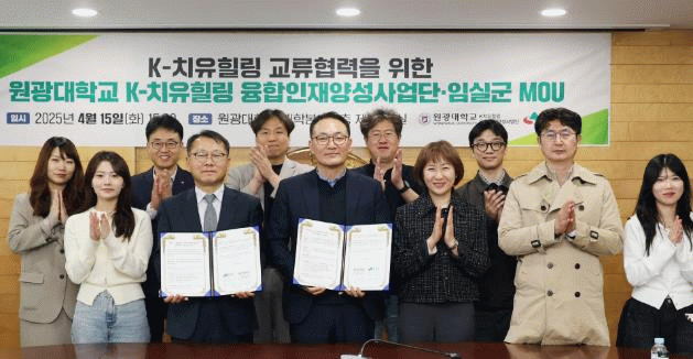 원광대 대학본부 회의실에서 열린 이번 협약식은 이진관 임실 부군수와 김흥주 K-치유힐링융합인재양성사업단장 등 양 기관 관계자들이 참석한 가운데, 협약에 따라 양 기관은 반려동물 프로그램 공동개발 및 K-치유힐링 관련 융합인재 양성을 위해 협력하기로 뜻을 모았다.