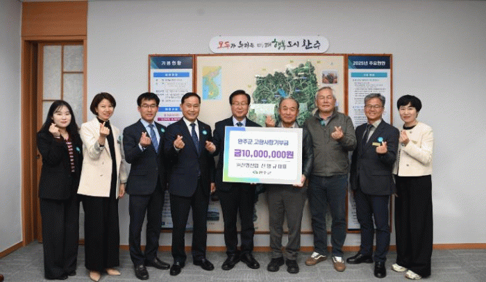 유희태 완주군수는 “신명규 대표의 따뜻한 고향사랑 실천에 깊이 감사드린다”며 “기부금은 지역 발전과 주민 복지 증진을 위해 소중히 사용하겠다”고 전했다.