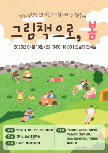 전주시 공립작은도서관운영협의회는 오는 19일 건지산 오송제 편백숲 일원에서 책 축제 ‘그림책으로, 봄’을 개최한다.