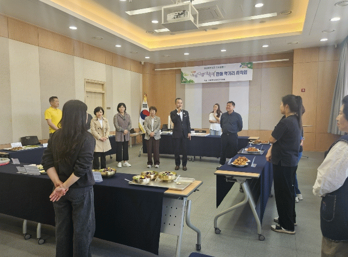 참석자들은 ▲녹돈가스, ▲녹돈부리또, ▲쇠고기녹차쌀국수, ▲쌀소금빵, ▲꽃비빔밥, ▲다슬기비빕밥, ▲오븐구이치킨 등 부스별로 준비한 20여 가지 음식을 시식하며 맛과 양, 위생 상태, 가격 대비 만족도 등에 대해 자유롭게 의견을 공유했다.
